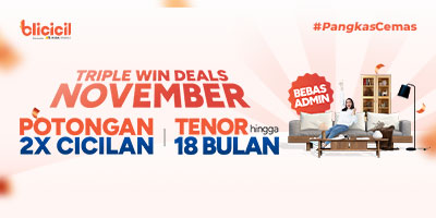 Wujudkan impian memiliki furnitur rumah idaman dengan promo spesial Triple Win Deals November dari Blicicil, eksklusif di pameran Mega Finance…